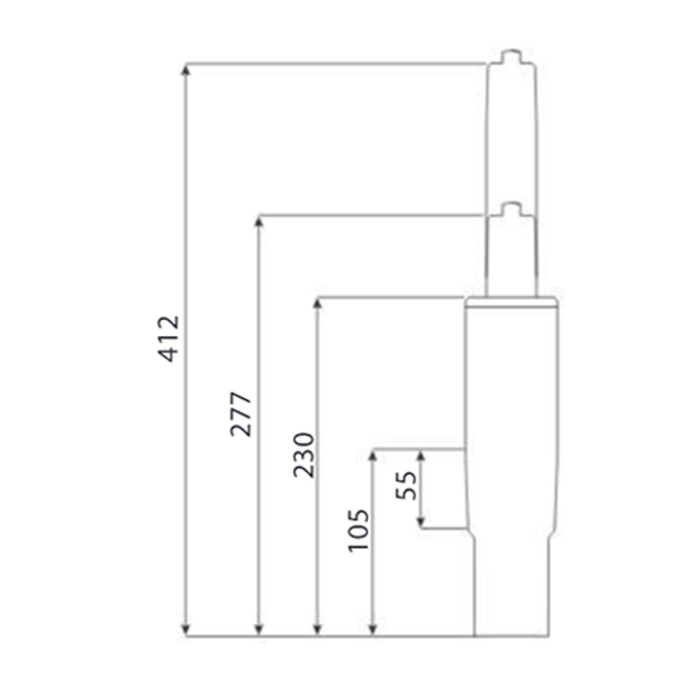 Ukupna duljina tijela podizača (čahure): 23 cm (standardnih 18 cm + produžetak 5 cm u odnosu na liftomat koji se koristi za uredske/konferencijske fotelje)