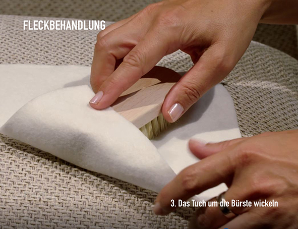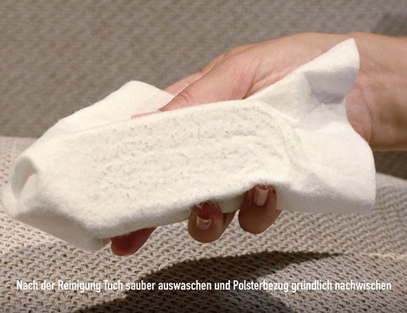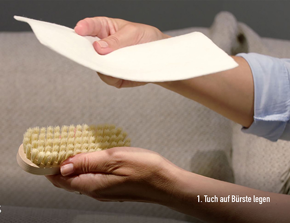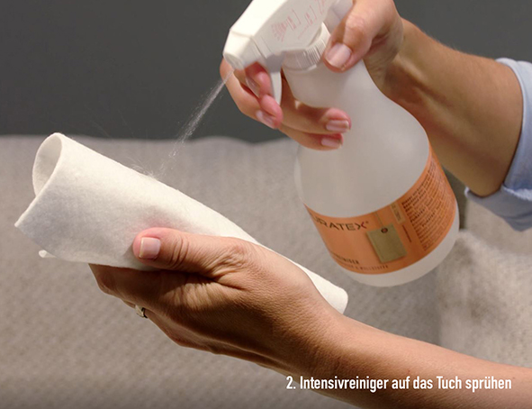 Primjena PURATEX® seta vrlo je jednostavna i ne zahtijeva prethodno iskustvo. Sredstvo se ne raspršuje izravno na presvlaku, već na krpu omotanu oko četke, čime se osigurava maksimalna kontrola i ravnomjerno čišćenje. Čišćenje se provodi kružnim pokretima, od šava do šava, što osigurava ujednačen rezultat bez vidljivih prijelaza. Za jače zaprljane površine postupak se može ponoviti. Nakon čišćenja, presvlaka se dodatno njeguje brisanjem čistom, blago navlaženom krpom s destiliranom vodom.